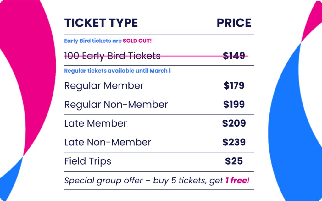 Take advantage of our group discount – buy 5 tickets and get 1 free!